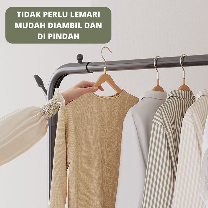 Megam Rak Gantungan Baju Jemuran Stand Hanger Double Rak Baju/Topi/Tas/Sepatu Portable Multifungsi Rak Hanger Display B