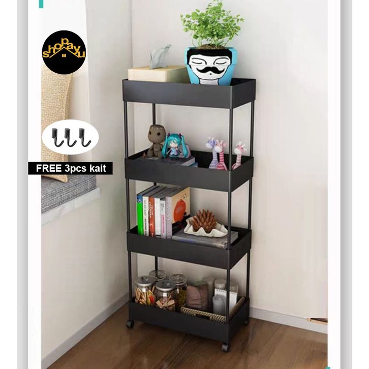 Rak troli square plastik rak toilet rak kamar mandi rak dapur serbaguna rak susun portable roda