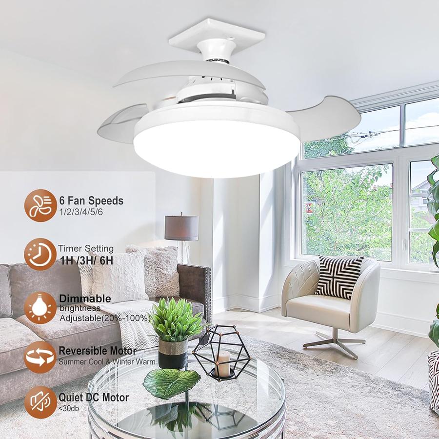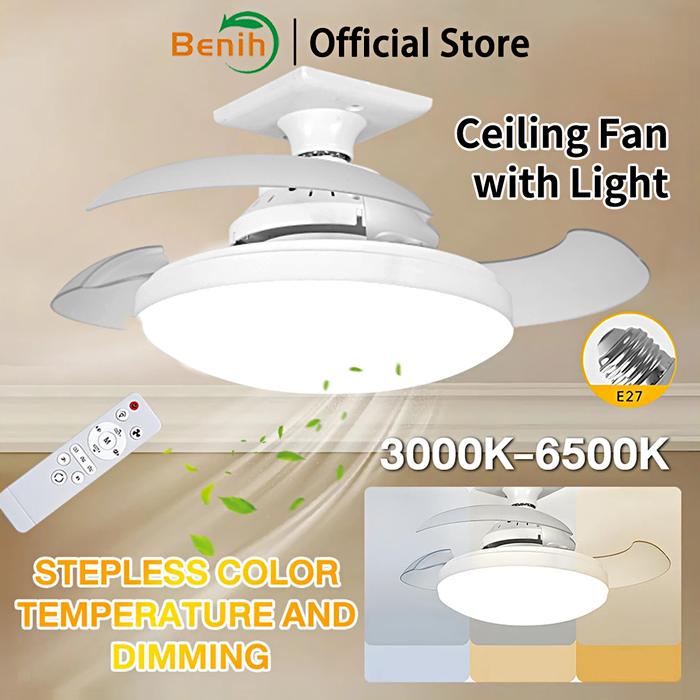 Benih E27 Lampu Kipas Angin 2in1 Multifungsi Lampu Kipas 3 warna Lampu Kipas LED 60W Auto Merenggang dan Menutup