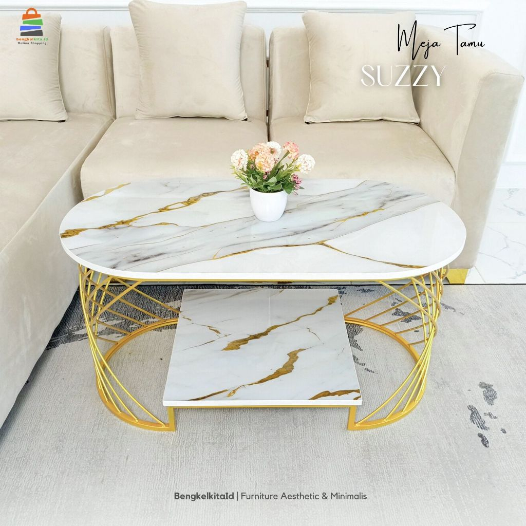 Meja Tamu Suzzy Jari Oval Minimalis Mewah Meja Ruang Tamu Minimalis Meja Tamu Aesthetic Meja Sofa
