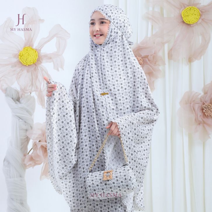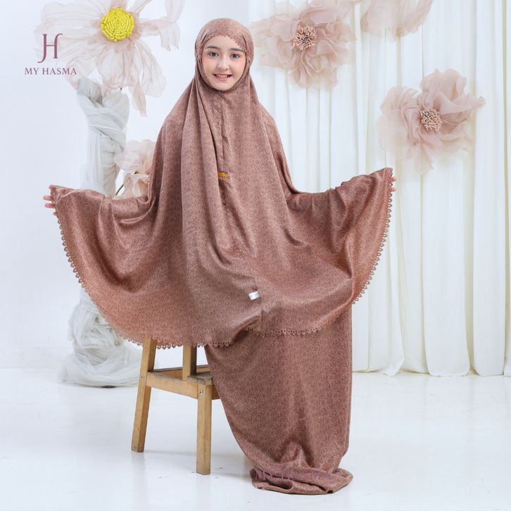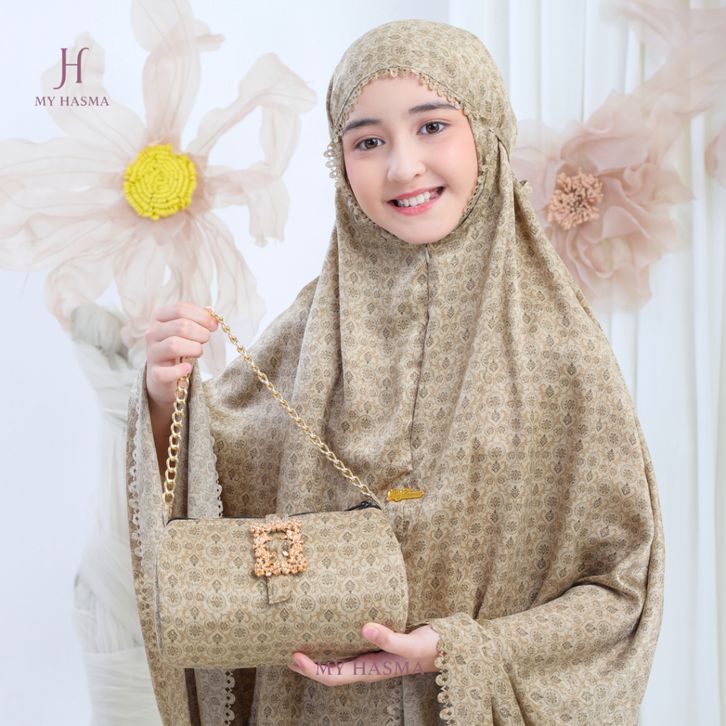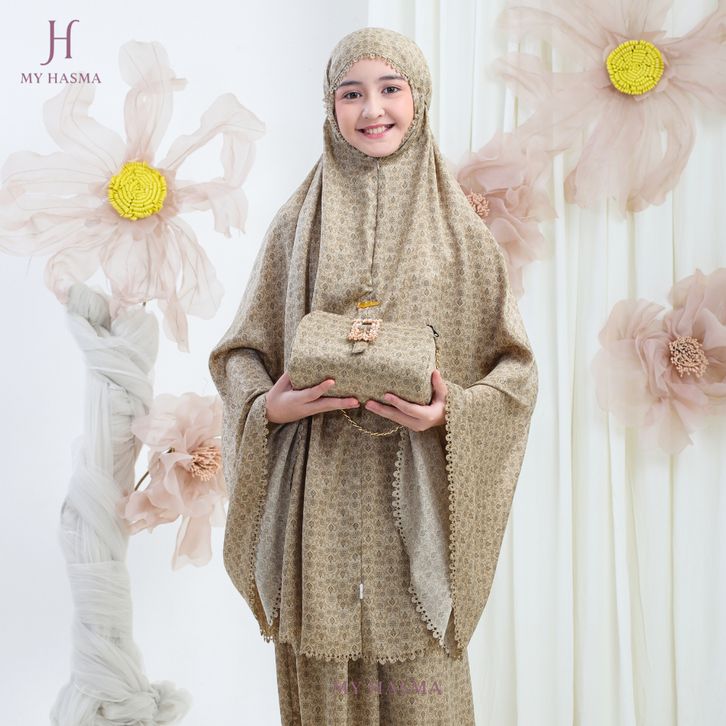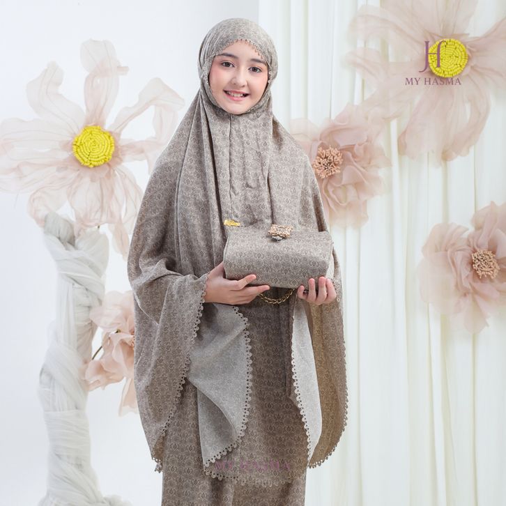 Mukena Anak Perempuan Remaja Lasercut 2in1 Sutra Silk Liora Series My Hasma