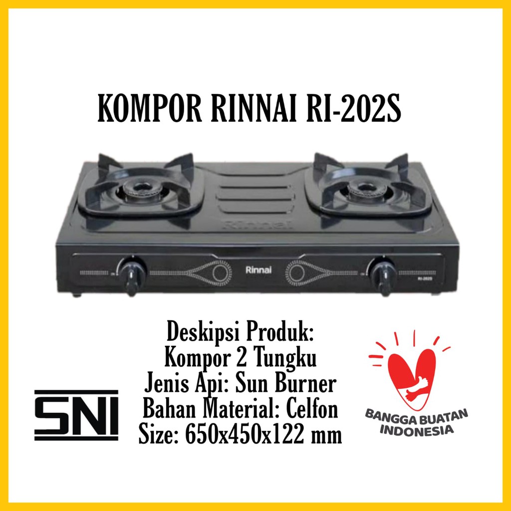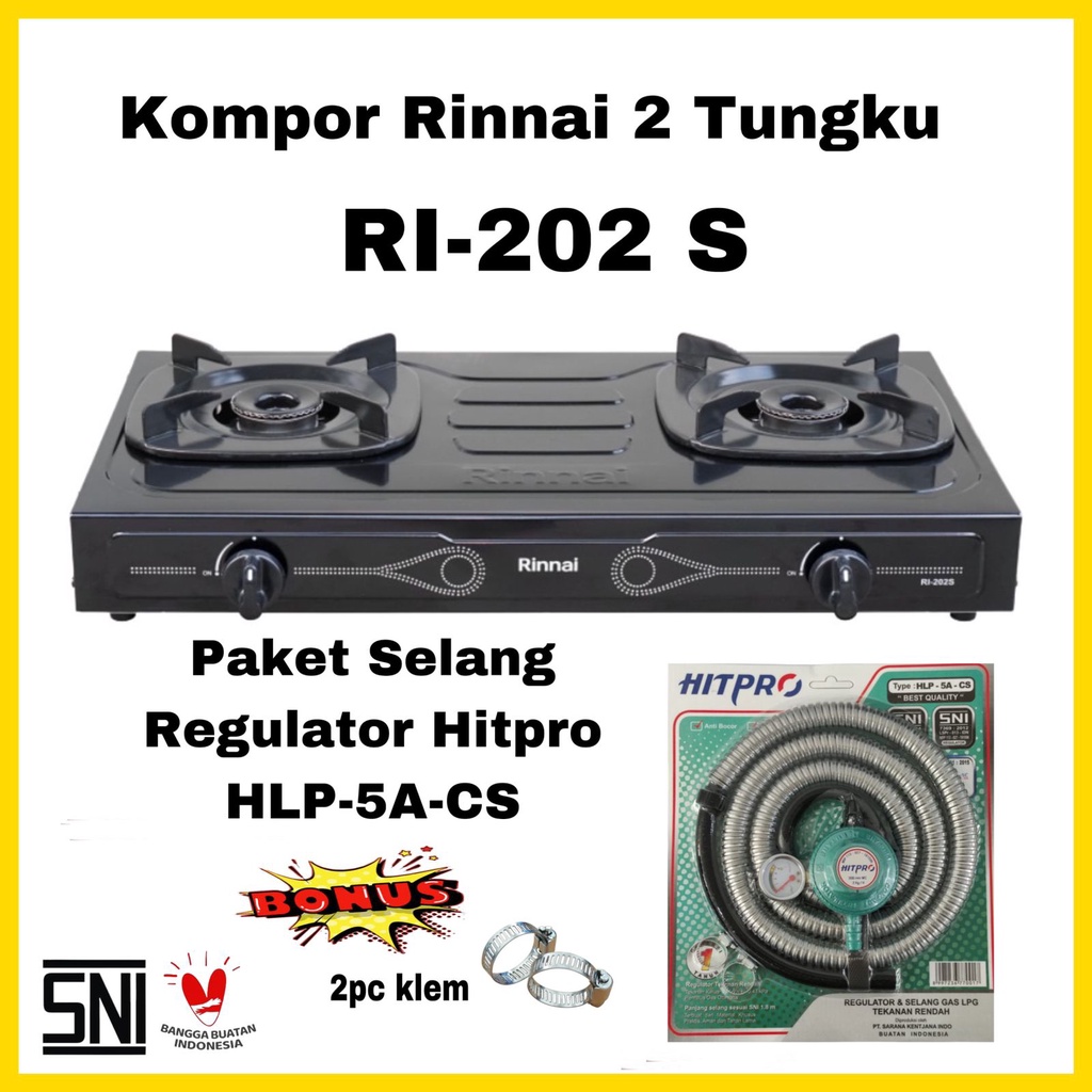 Paket Kompor G4s Rinnai 2 Tungku RI 202 S BONUS Selang Regulator G4s Hitpro / RI 202S