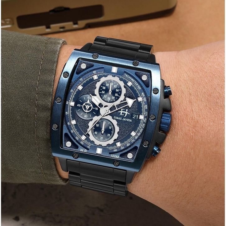 Terlaris Evans Jayden Jam Tangan Pria 9463-1 Rantai Stainless Chrono 10ATM