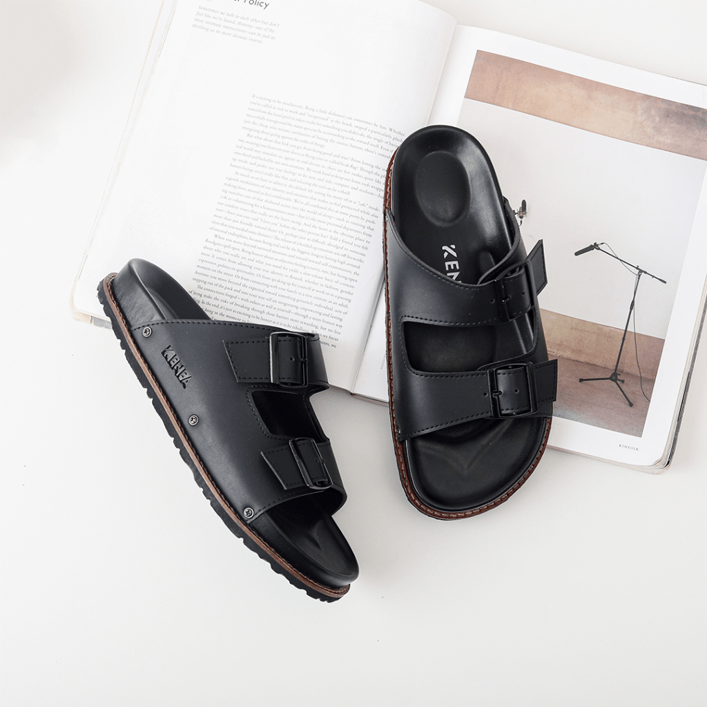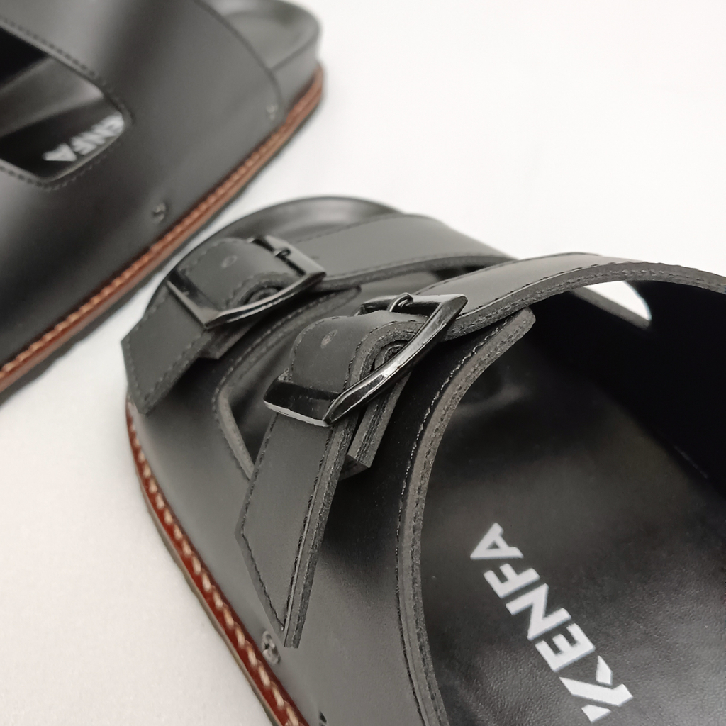 KENFA - NIVE PLATER SANDAL FORMAL CASUAL PRIA WANITA KULIT SLIDE SLOP DISTRO HITAM STYLIST