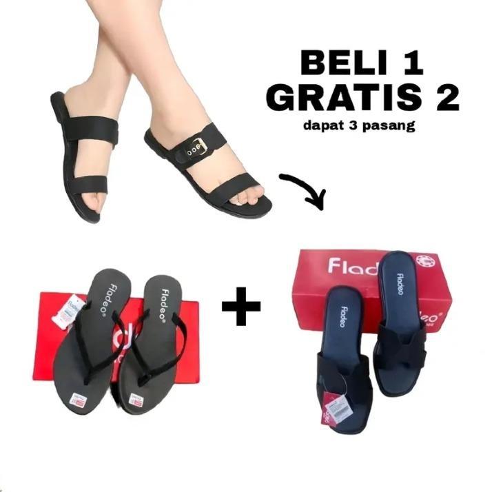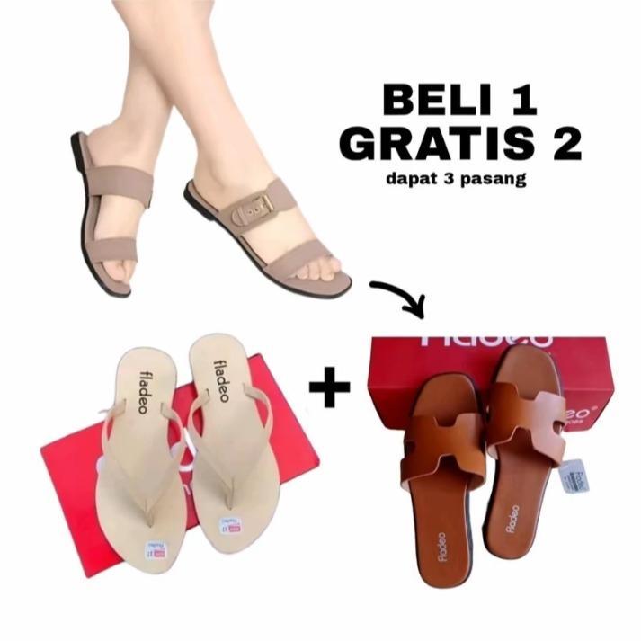PROMO BELI 1 GRATIS 2 SANDAL WANITA FLADEO / SANDAL SLOP JEPIT WANITA VIRAL KEKINIAN GIRLSTYLE HITAM SENDAL CEWEK COKLAT