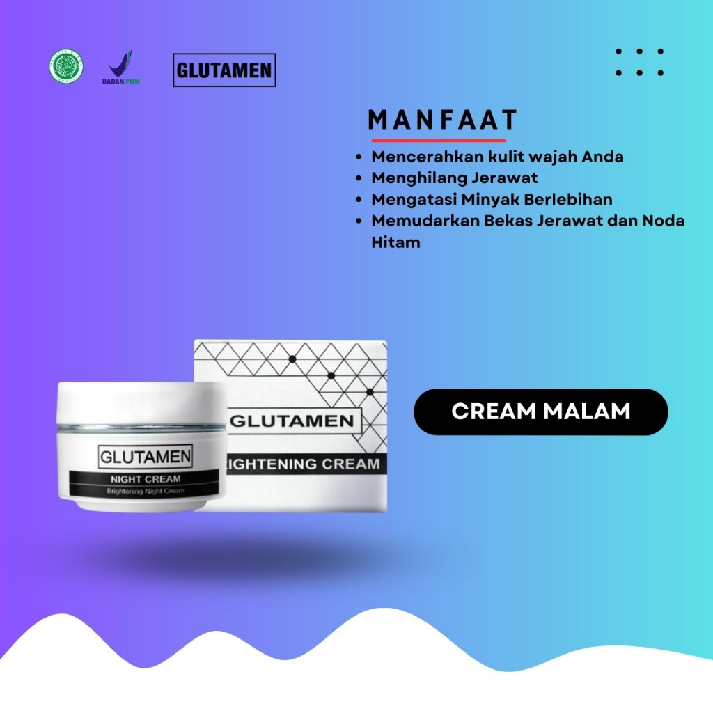 [Mall] Glutamen Cream Malam Gentel BPOM Krim Pemutih Kulit Wajah Pria Cream Retinol Penghilang Noda hitam Bekas