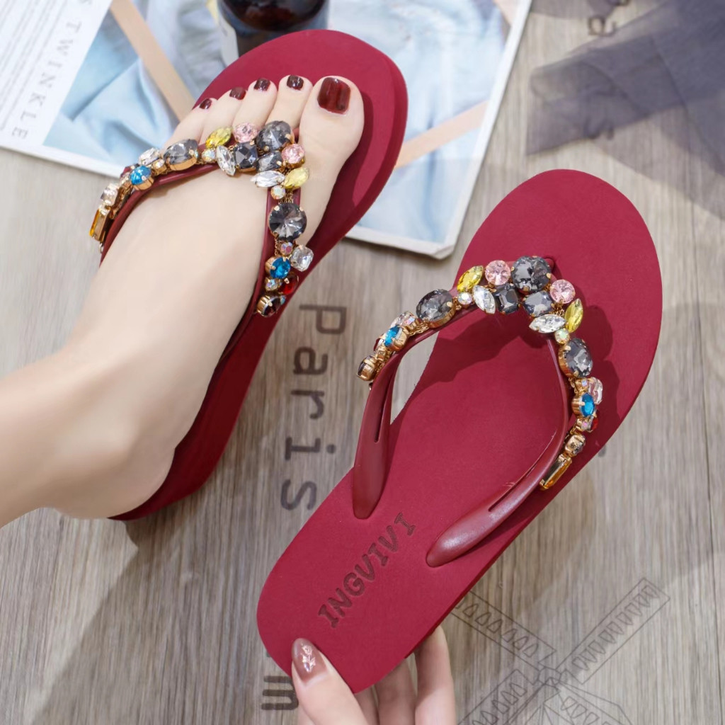 SANDAL JEPIT INGVIVI WEDGES 799 SANDAL INGVV SWAROVSKY WEDGE PERMATA SPONS SPON FLIP 5CM