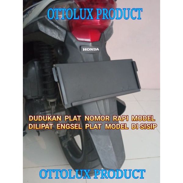 Dudukan Plat Motor Dudukan plat nomor motor M0Del ekslusiv di sisip. Stainles dan hitam. belakang bisa lipat engsel