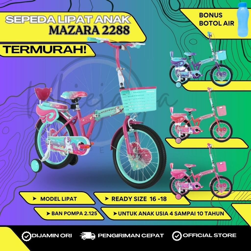 SEPEDA LIPAT ANAK 16" 18" MAZARA - VELION - SALVO DENGAN KRANJANG BONUS BOTOL MINUM SOFTDRINK