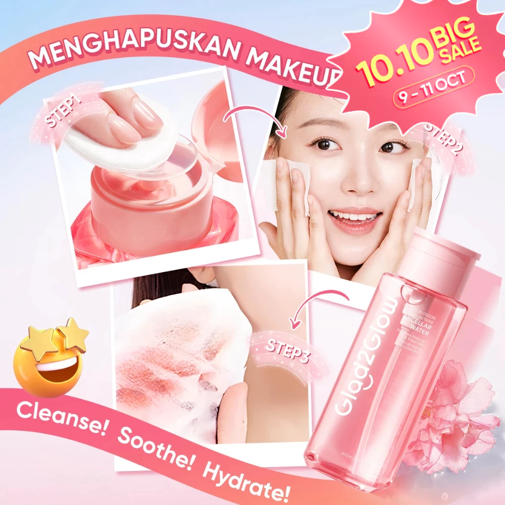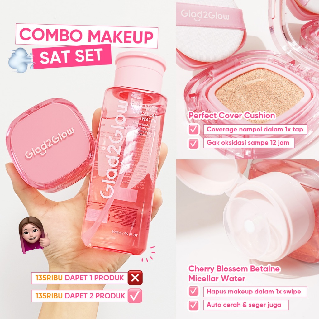 [Mall] Glad2Glow Paket 2pcs Set Cushion and Cherry Blossom Betaine Micellar Water 300ml Makeup Remover Pembersih Make Up