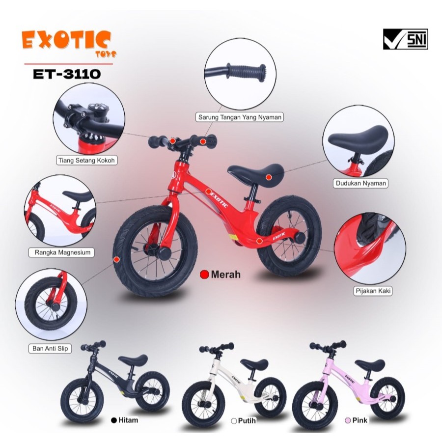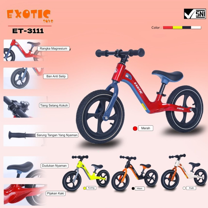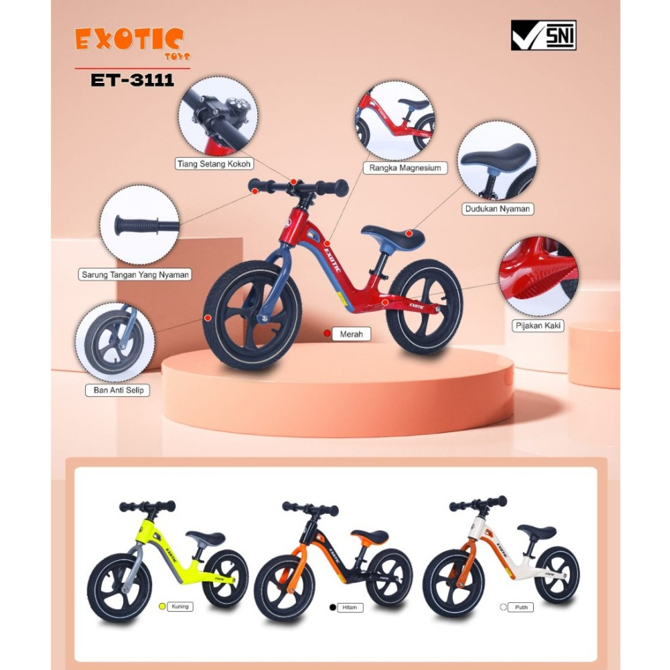 (TERMURAH) BALANCE BIKE EXOTIC 2011 3110 3111 3112 MAGNESIUM BAN POMPA PUSH BIKE ALAT BELAJAR KESEIMBANGAN SEPEDA ANAK