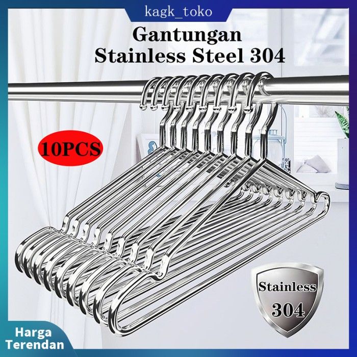 Promo Hanger Stainless Steel 304 Gantungan Pakaian Tebal Anti Karat Set 10PCS - 32cm-10PCS Promo