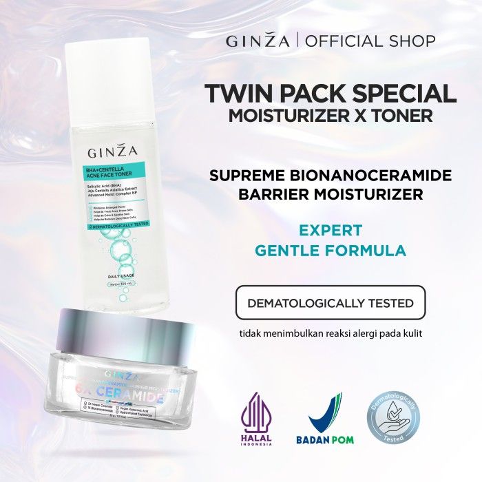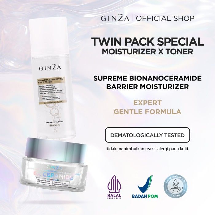 pelembab wajah PAKET CANTIK ISI 2 GINZA 6X Ceramide Skin Barrier Repair Moisturizer Gel 30g X Ginza Face Toner 105 mili