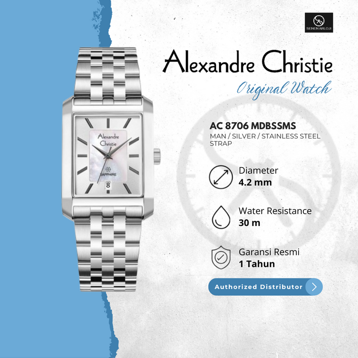 Jam Tangan Pria Alexandre Christie AC 8706 Tanggal Aktif Strap Stainless Steel Original