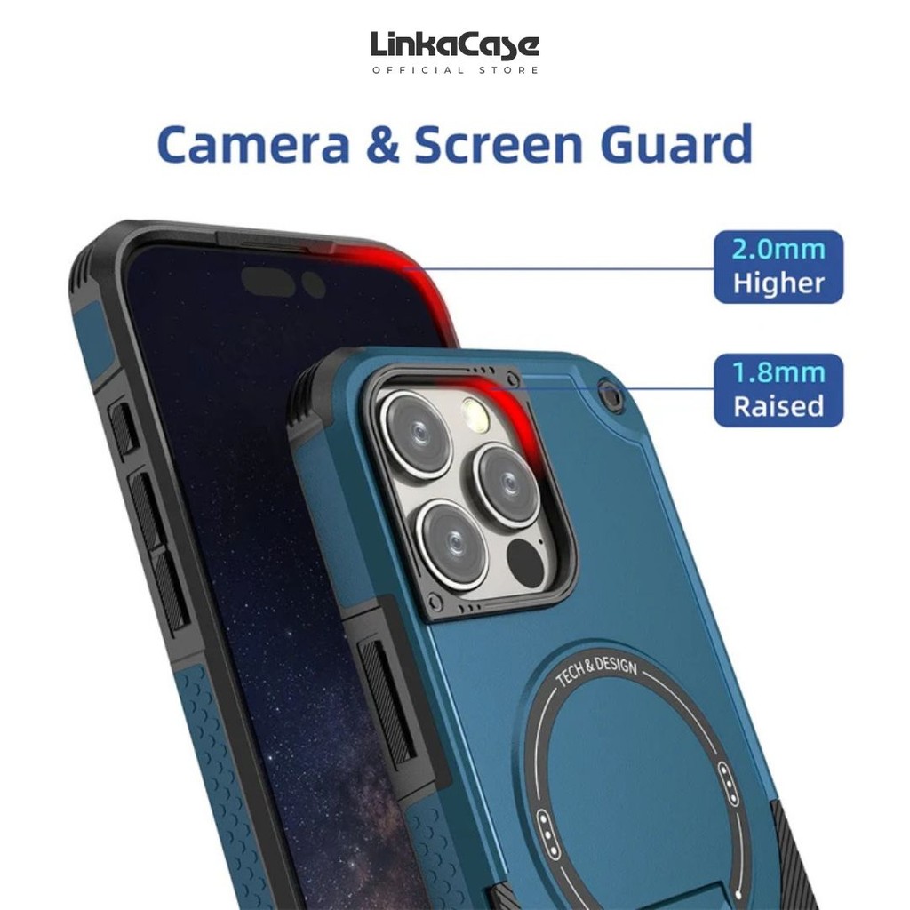 (LINKACASE) CASE MAGSAFE MILITARY FOR IPHONE 11 12 13 14 15 PRO MAX PLUS HARDCASE COVER DROP PROTECTION WITH KICKSTAND