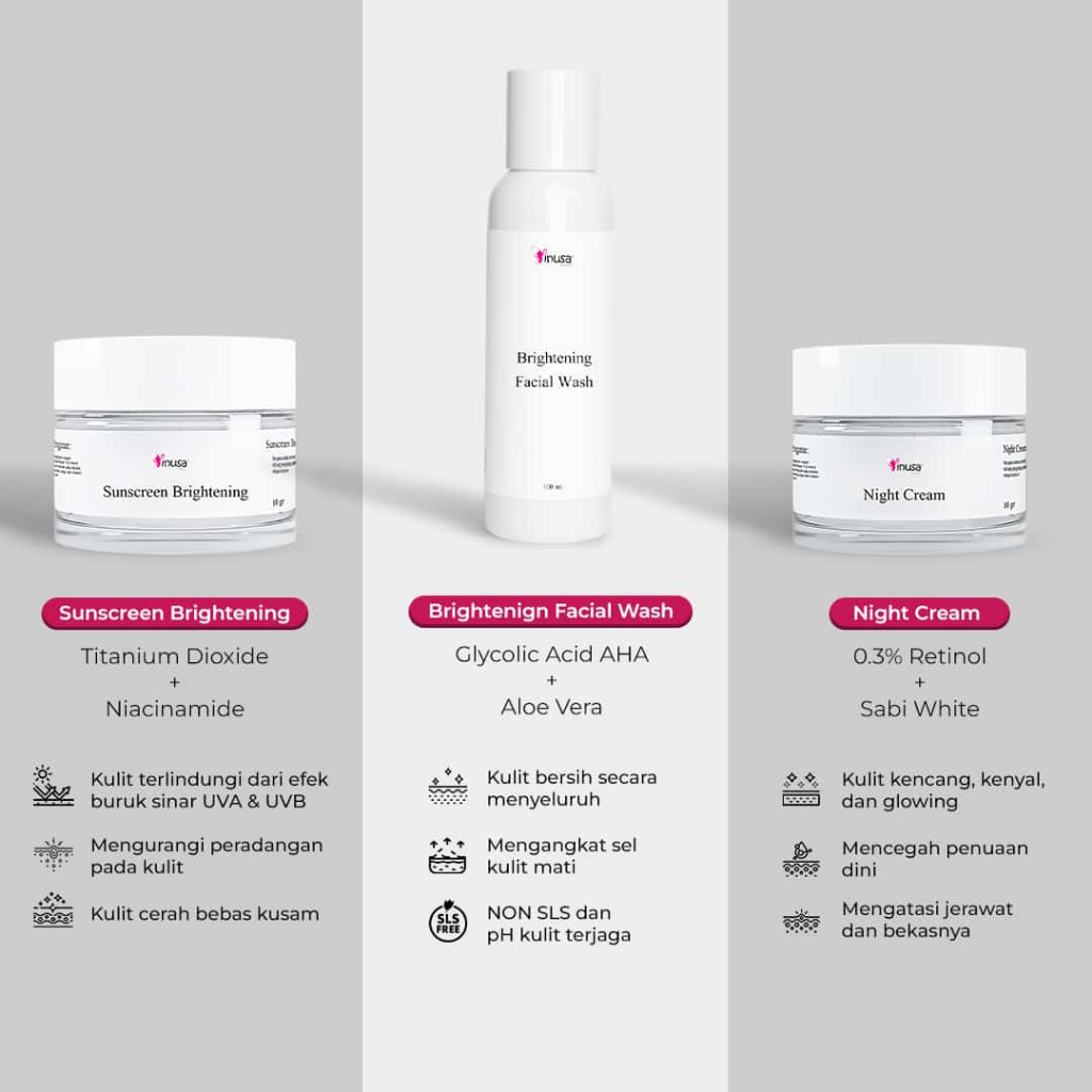 [Mall] Inusa Paket Whitening Glowing Basic Krim Pencerah Wajah Kusam dan Kerutan