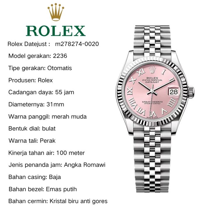 original ROLEX m278274-0020 Seri Datejust Jam Tangan Wanita Gerakan Mekanis Otomatis 31mm