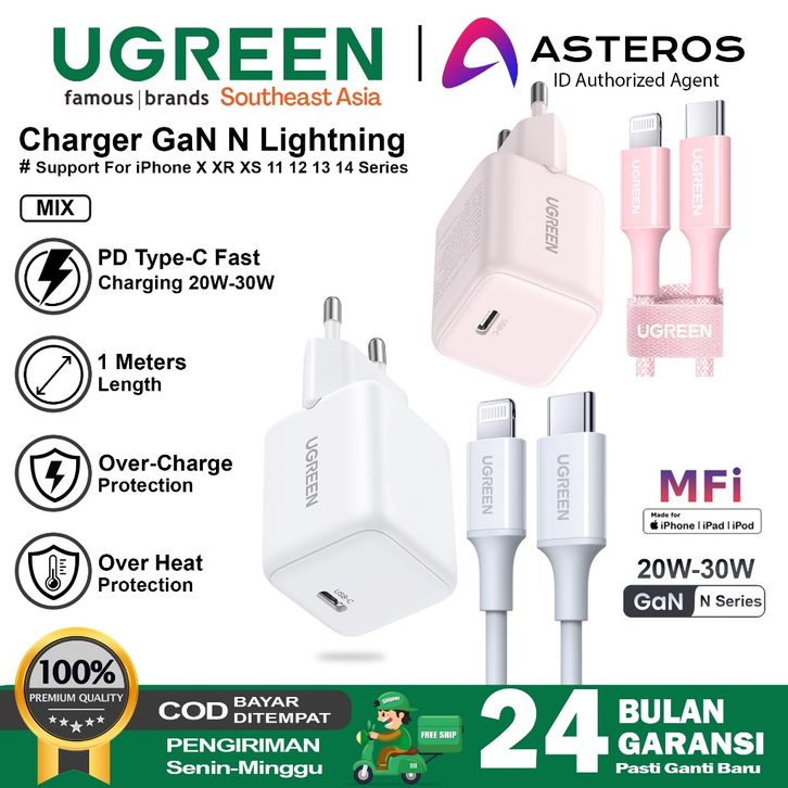 UGREEN Charger GaN N iPhone Lightning MFI PD Type C Fast Charging 20W 30W