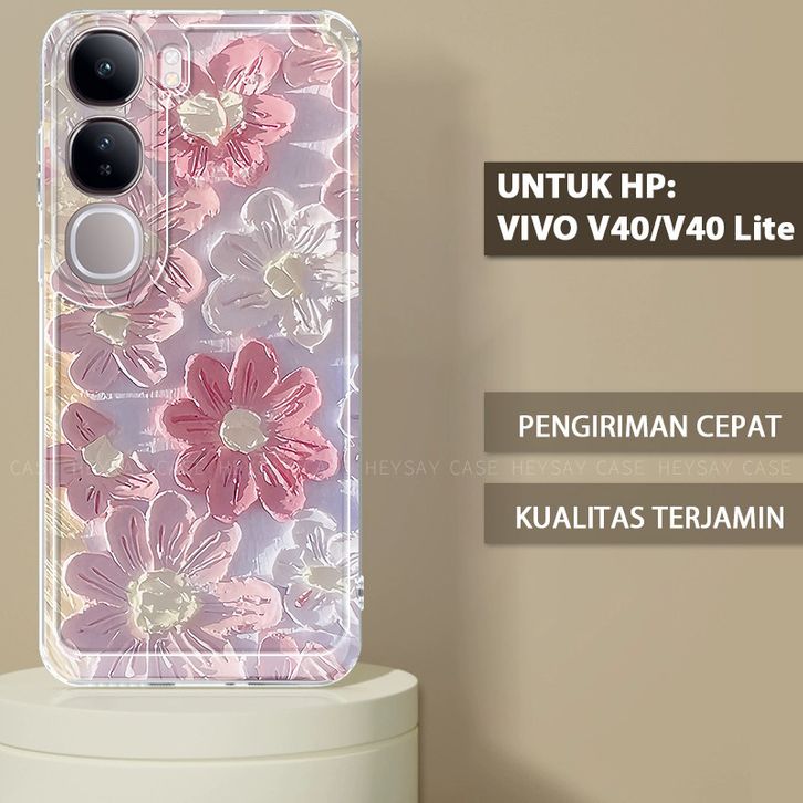 Bunga NEW Untuk Case Hp V40 Lite 4G 5G Casing Smile Cowok Pink Soft Tk Cewek Terbaru Lucu