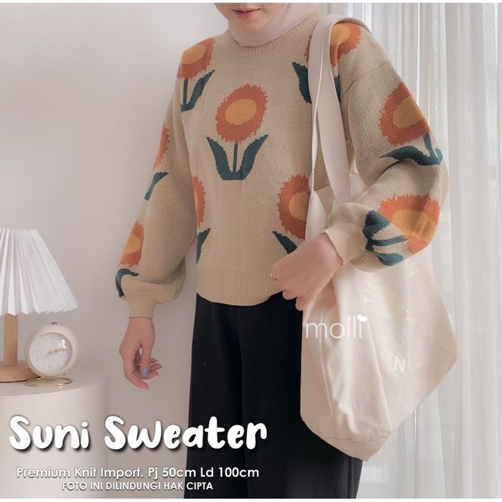 UNI SWEATER RAJUT PREMIUM KNITS MOTIF BUNGA - NXTSTYLE
