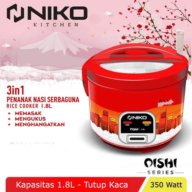 NIKO RICE COOKER GOHAN OISHI 1.8 1.2 1 LITER MAGICOM MINI PENANAK NASI ANTI LENGKET MAGIC COM TUTUP KACA TRANSPARAN