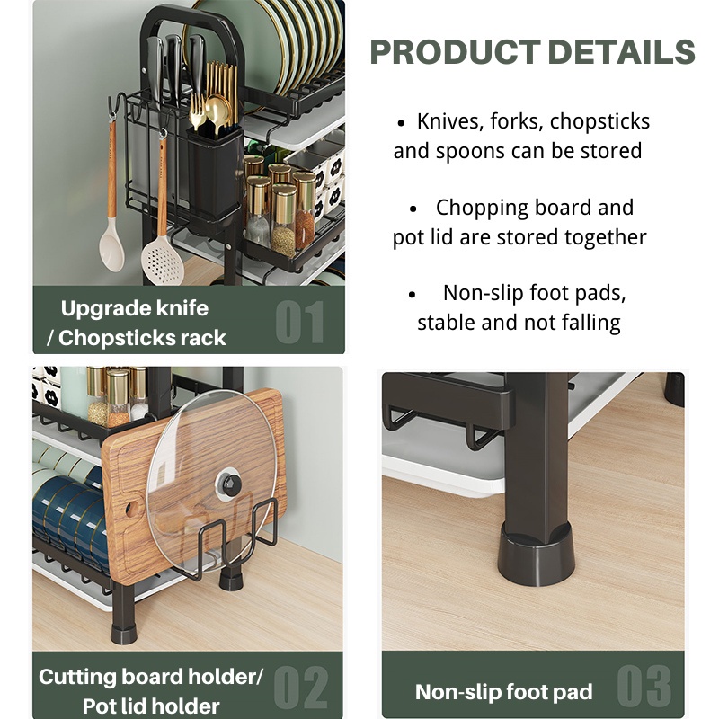Rak Piring Stainless Steel Rak Dapur Cuci Piring Wastafel Rak Piring Penyimpanan Rak Peralatan Dapur Dengan Aksesor