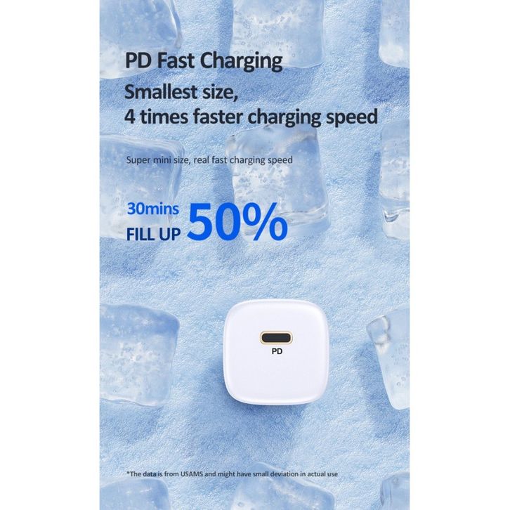 Usams T36 U63 Charger Kit 20W PD iPhone 8Pin Type C Lightning Fast Charging SuperSi