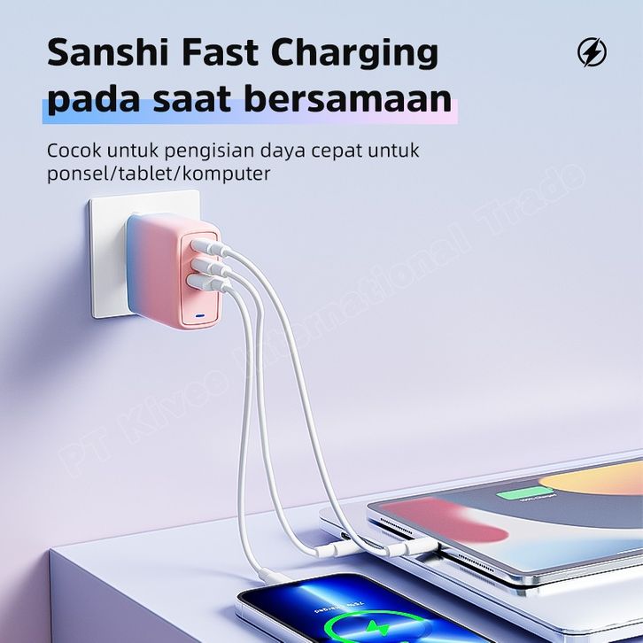 HOTBASIKE 3 in 1 Gan Charger iPhone Fast Charging 88W Type C USB Adaptor Mini murah Original