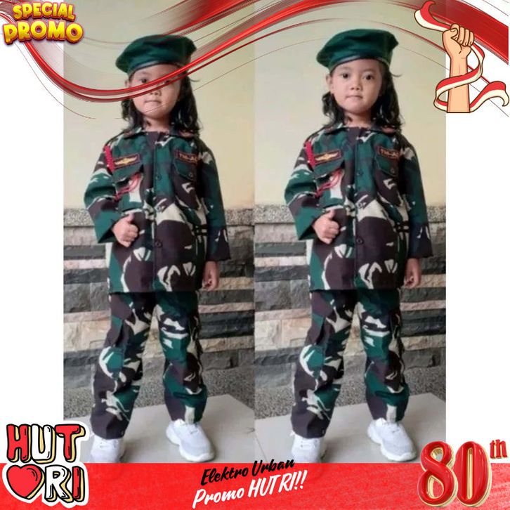 PAKET KOMPLIT baju seragam tentara tni AD anak loreng AU army kostum karnaval seragam profesi anak laki laki dan