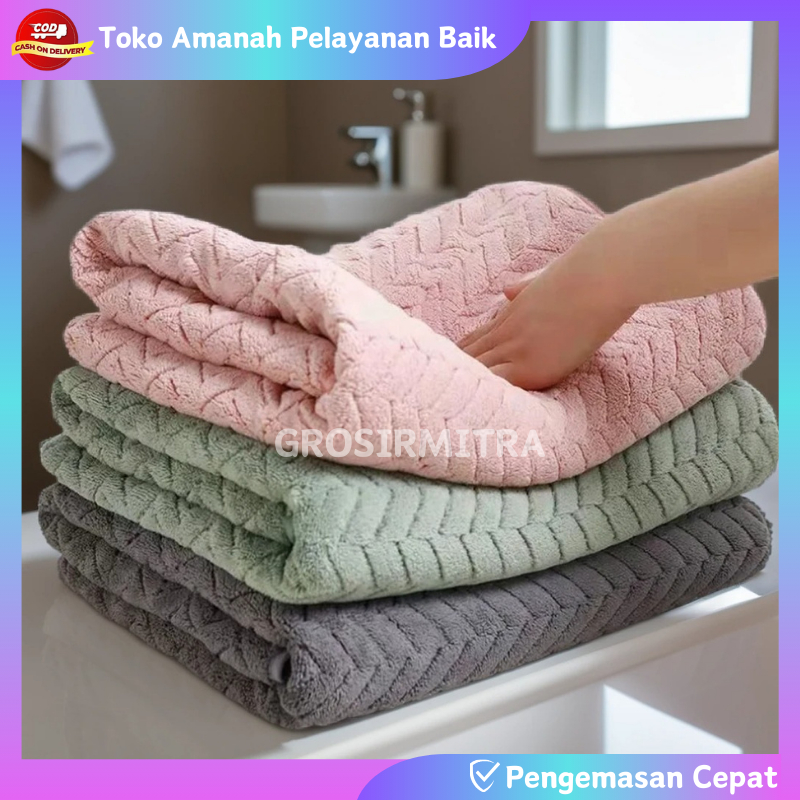 Handuk Mandi Dewasa Jumbo 85X170cm Handuk Microfiber Dewasa Perlengkapan Mandi Embos Zigzag Love
