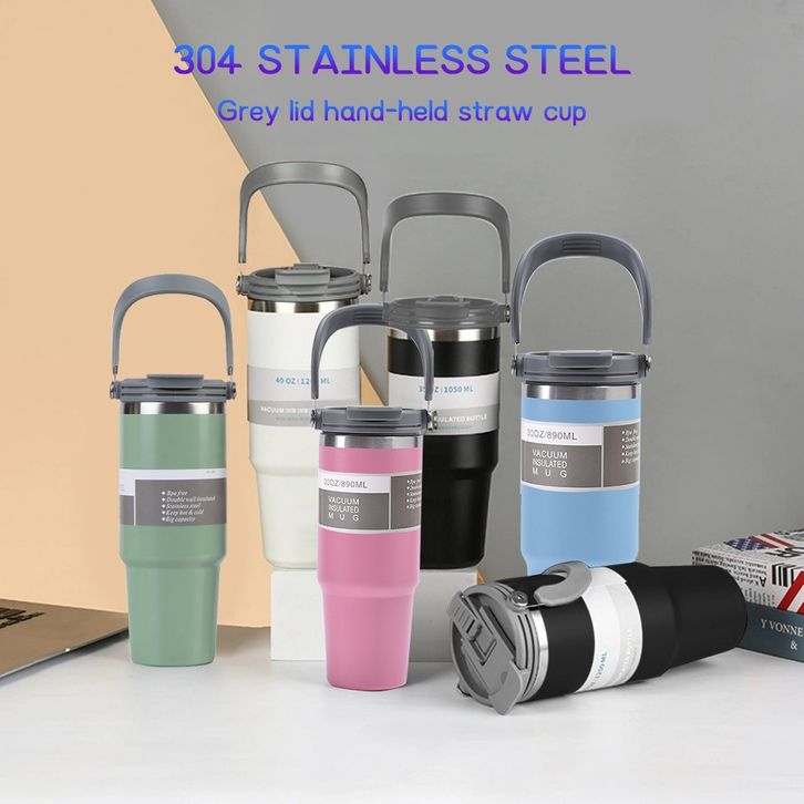 600/900ml Tumbler with Handle 304 Stainless Steel Coffee Cup Thermos Botol Minum Stainless Dua Lapisan Insulasi Dingin d