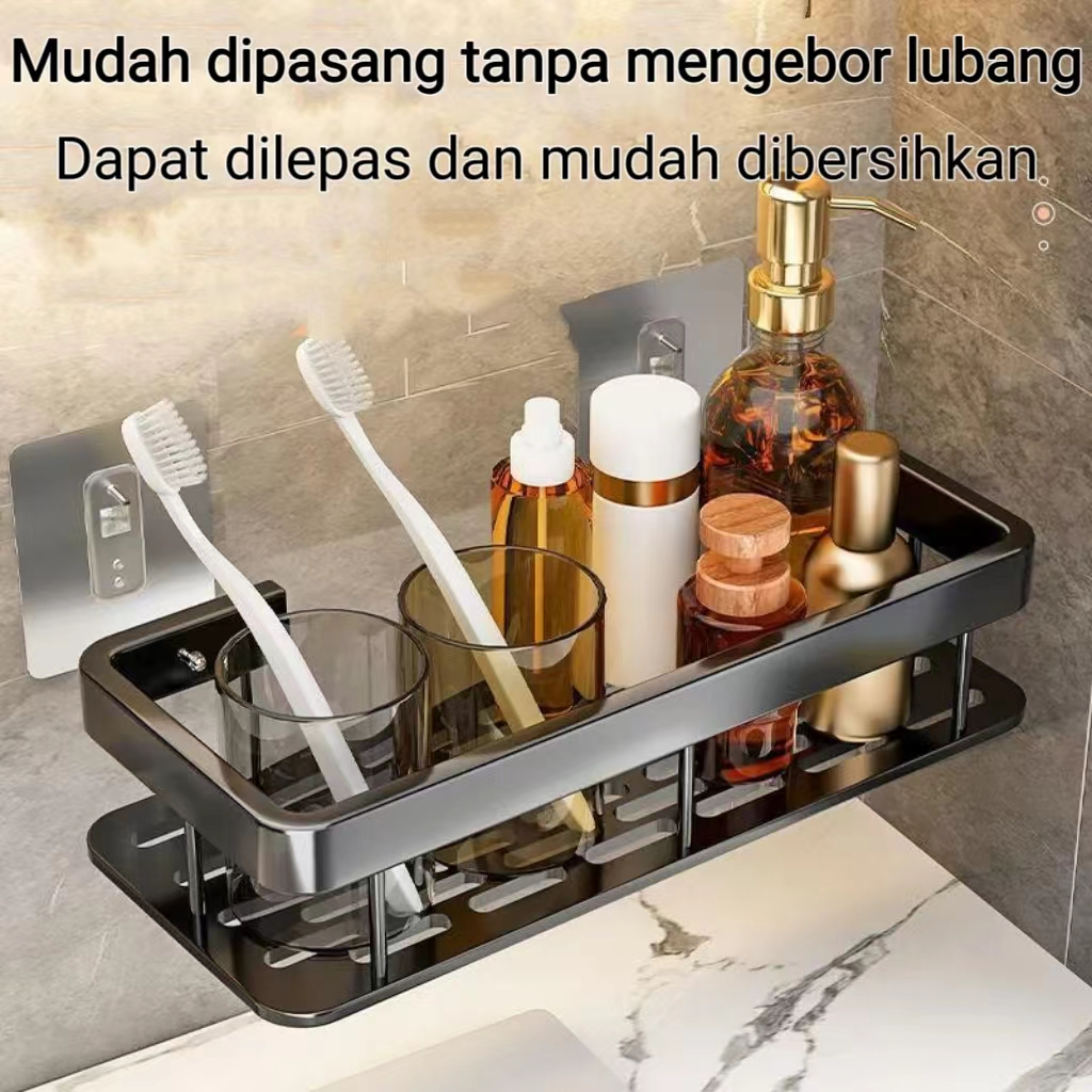 Aluminium R Angkasa Rak Kamar Mandi Sudut Rak Susun Tempel Dinding Rack Tempat Sabun Bumbu Rak Serbaguna