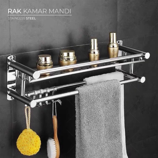 Rak Kamar Mandi 2 Susun Tingkat Aluminium WC Dinding Toilet Dapur