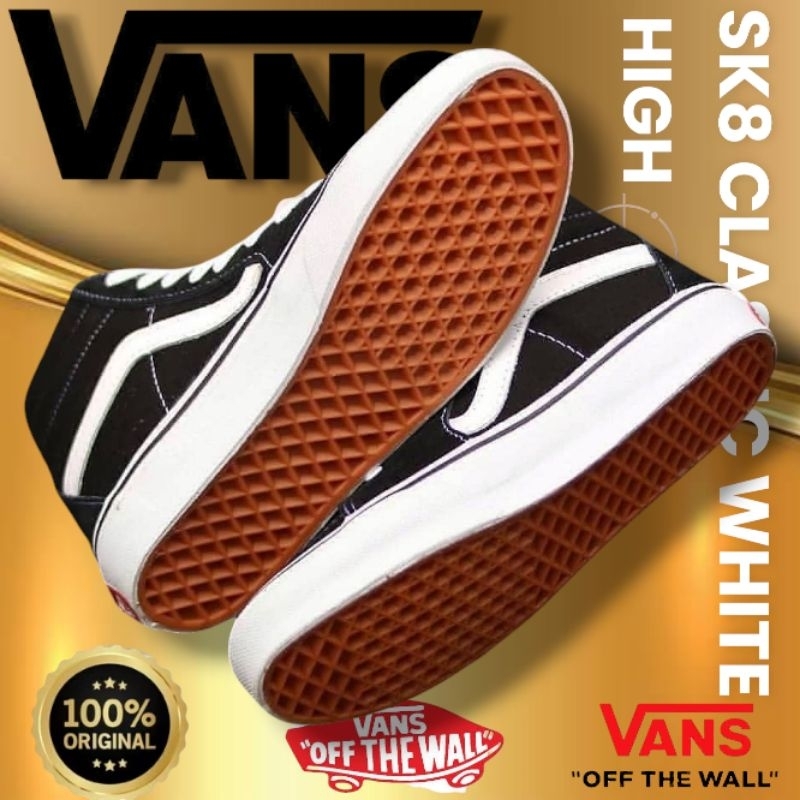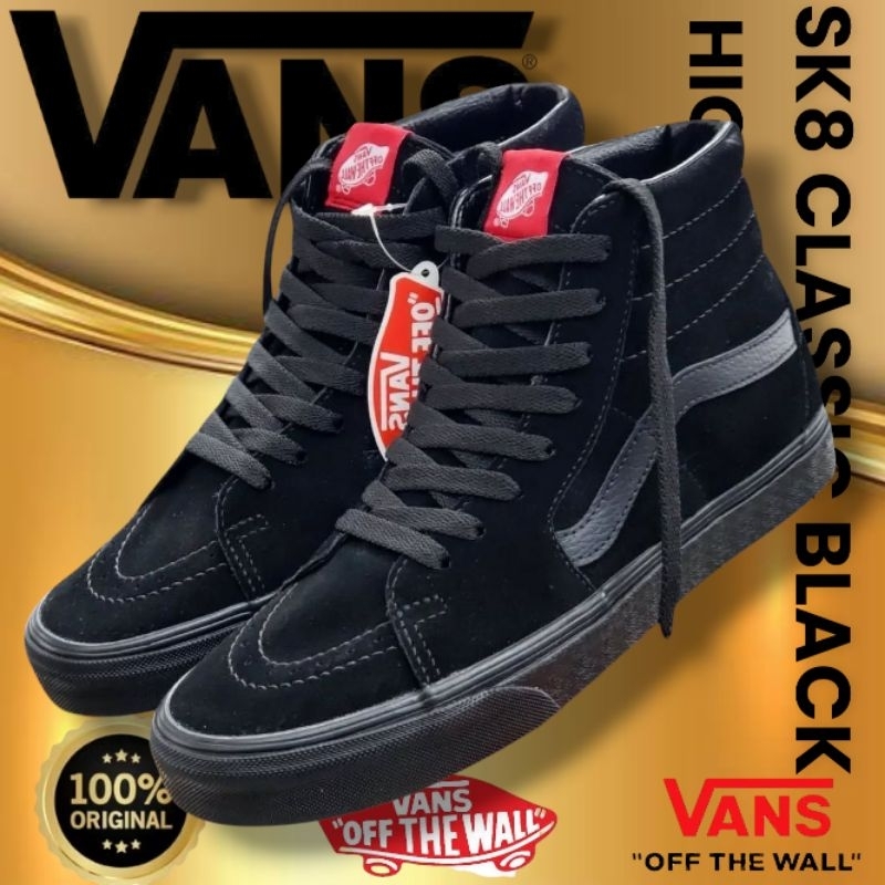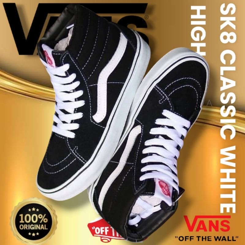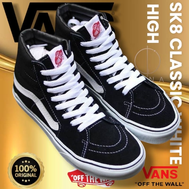 Sepatu Sekolah Hitam Vhanz Sk-8 Bw Classic Sepatu Sneakers Pria Wanita Tinggi