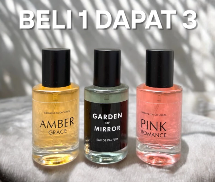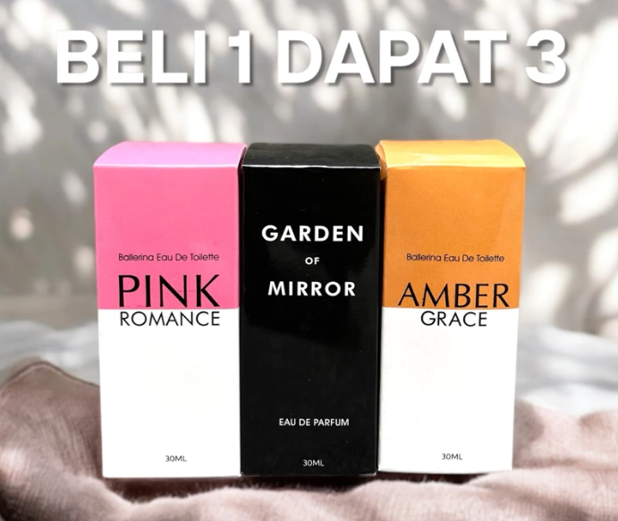 PROMO BELI 1 DAPAT 3 PARFUM PRIA PARFUM WANITA VIRAL BALLERINA AMBER GRACE PINK ROMANCE GARDEN OF MIRROR