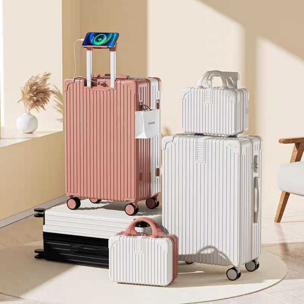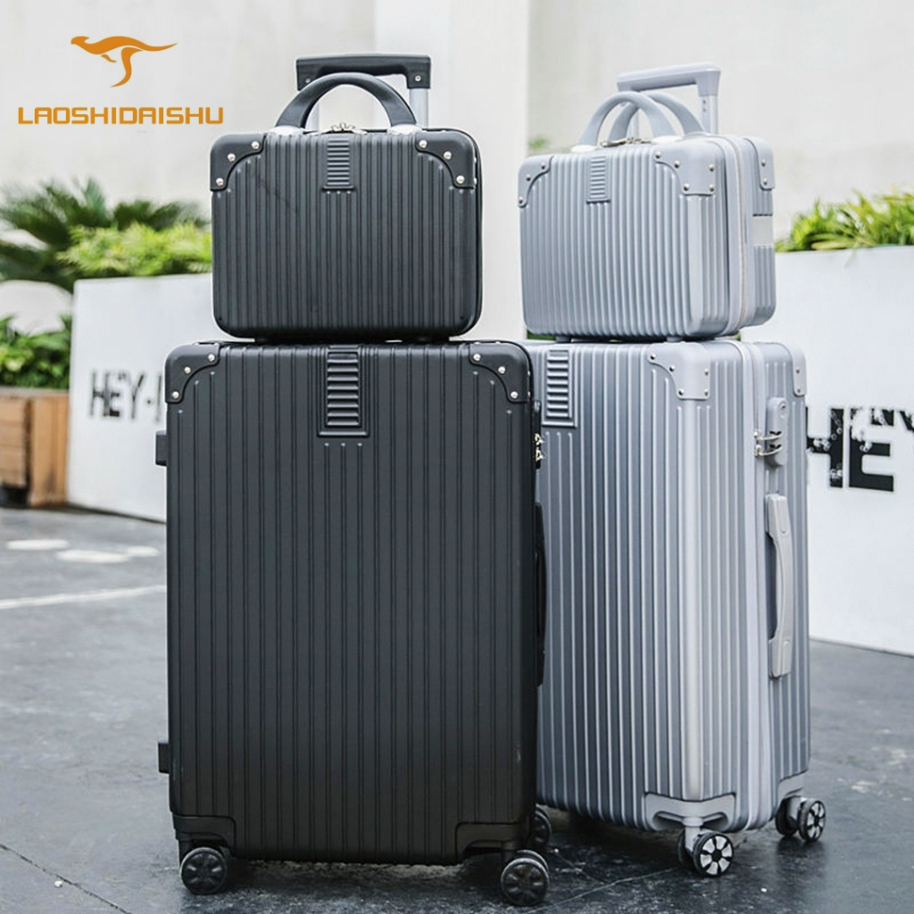 Laoshidaishu Koper 2 in 1 koper 22''24 inch Kabin Bagasi tas koper besar anak perempuan 20 inch Beauty Case koper Mini 14 Inch