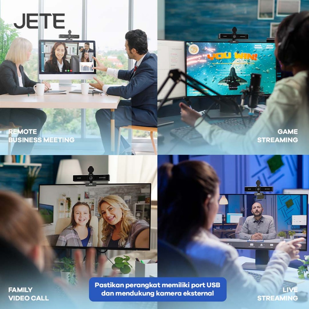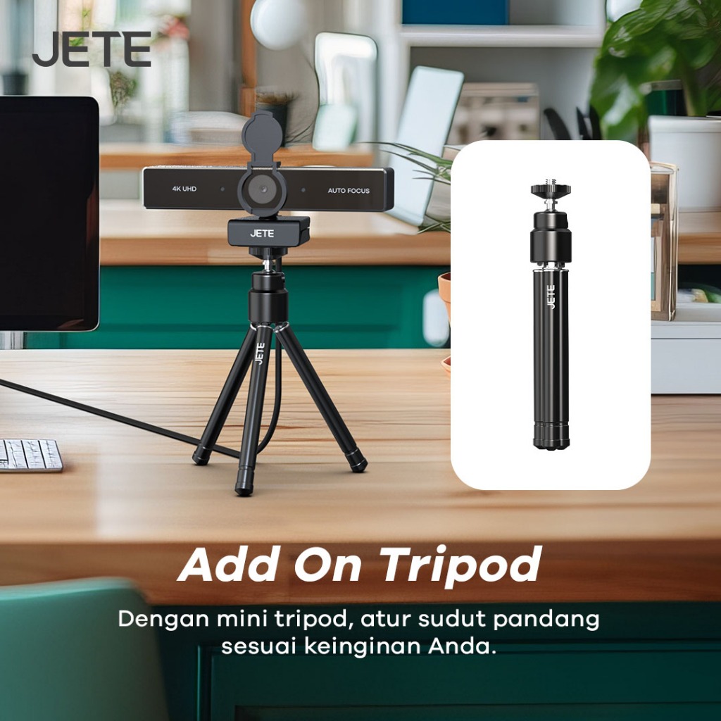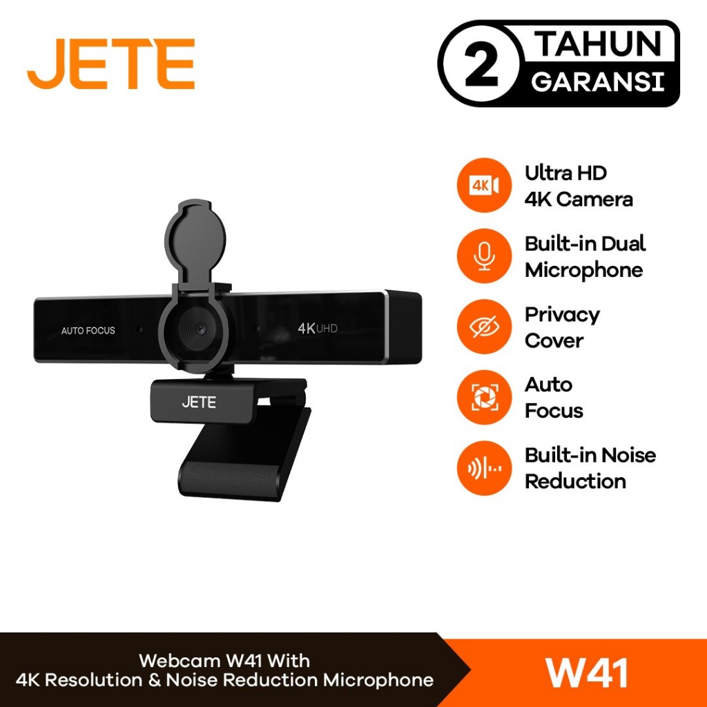 JETE W41 Webcam 4K UHD For Meeting Streaming 2160p Dual Mic FREE Mini Tripod Auto Focus Garansi 2 Tahun