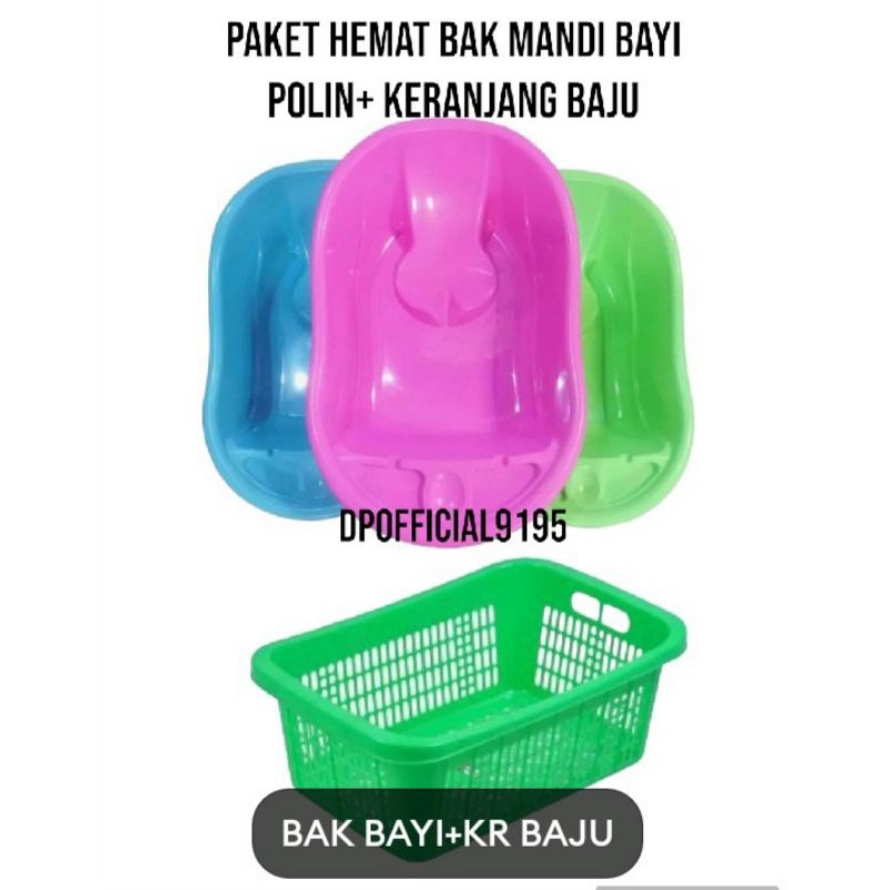 PAKET HEMAT BAK MANDI BAYI+HANGER PUTER/KERANJANG POPOK/PAKET 3 Produk