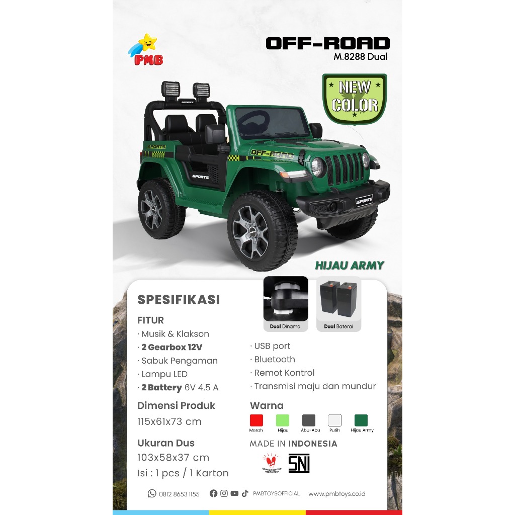 Mobil Aki Anak Jumbo PMB 8288 Jeep Rubicon Off Road Remote Murah Tanpa Dp