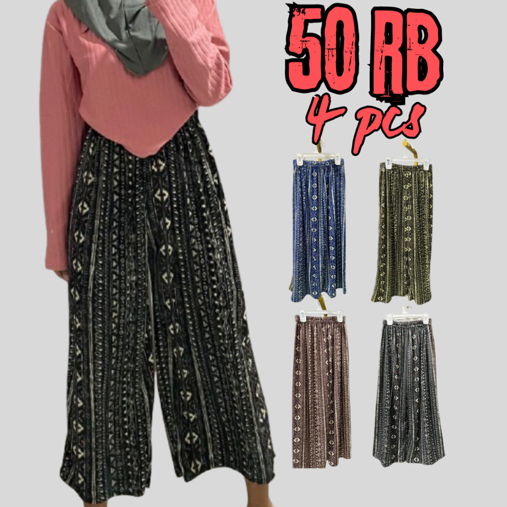 𝟓𝟎𝐑𝐛 𝐃𝐀𝐏𝐀𝐓 𝟒 Kulot Motif Etnik Celana Santai Celana Panjang Wanita Celana Tidur Celana Hommy