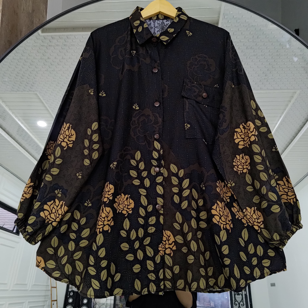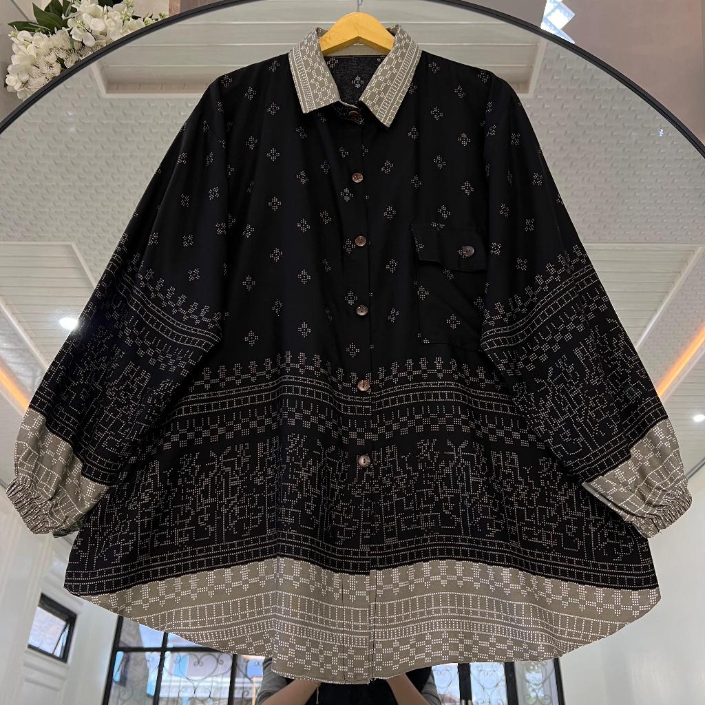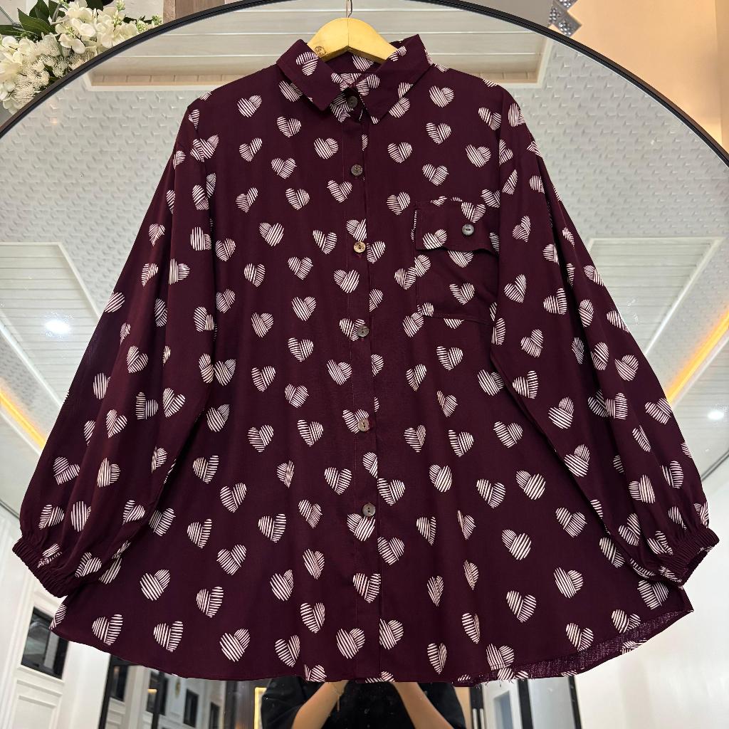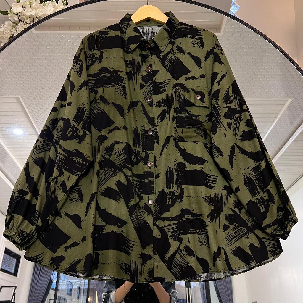 Atasan Kemeja LD 140cm Wanita Oversize Jumbo Plus Size Bahan Rayon Motif Kekinian
