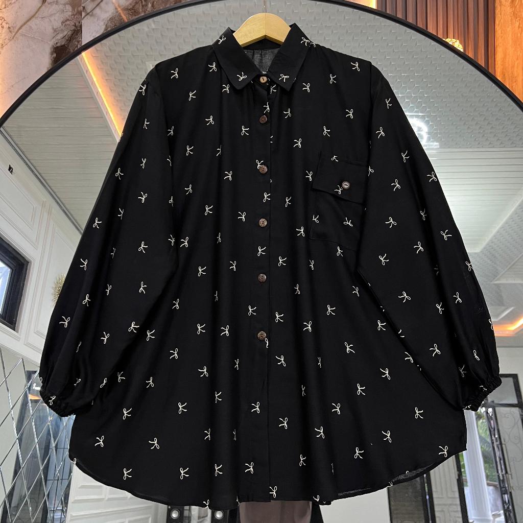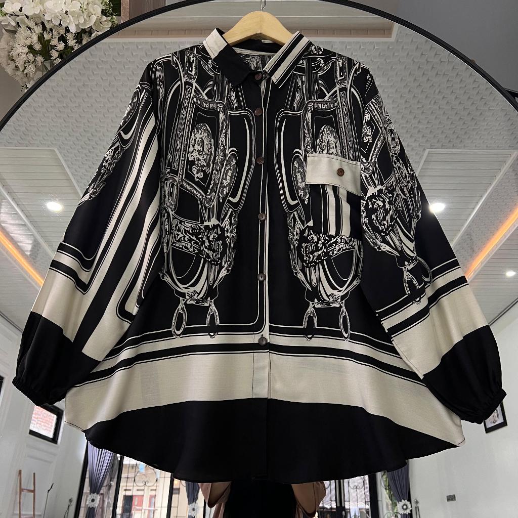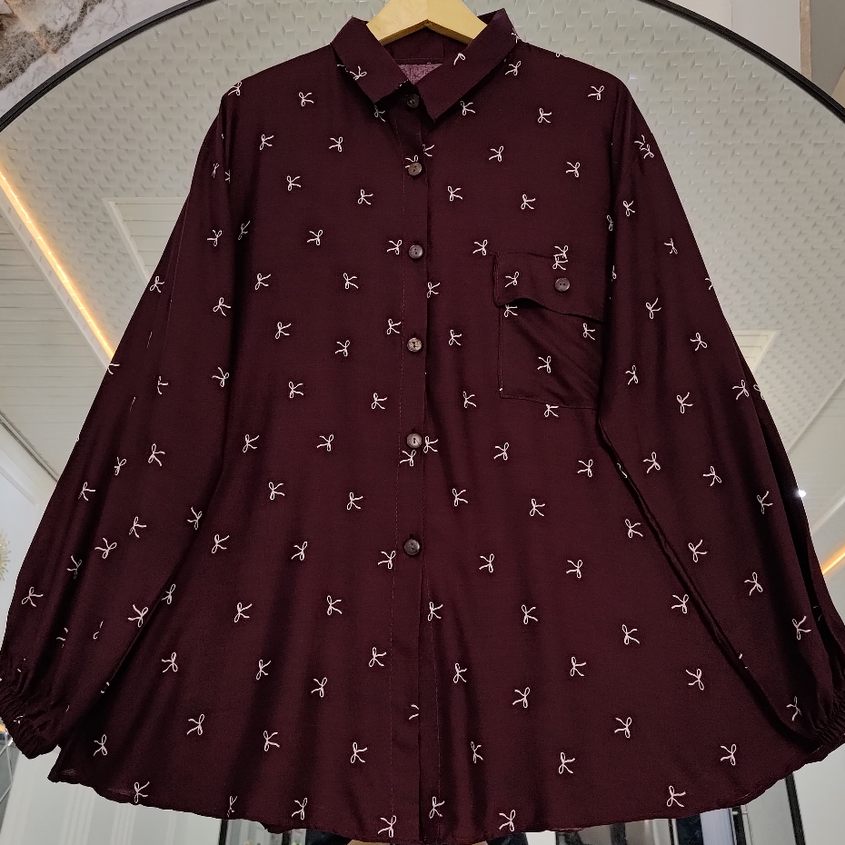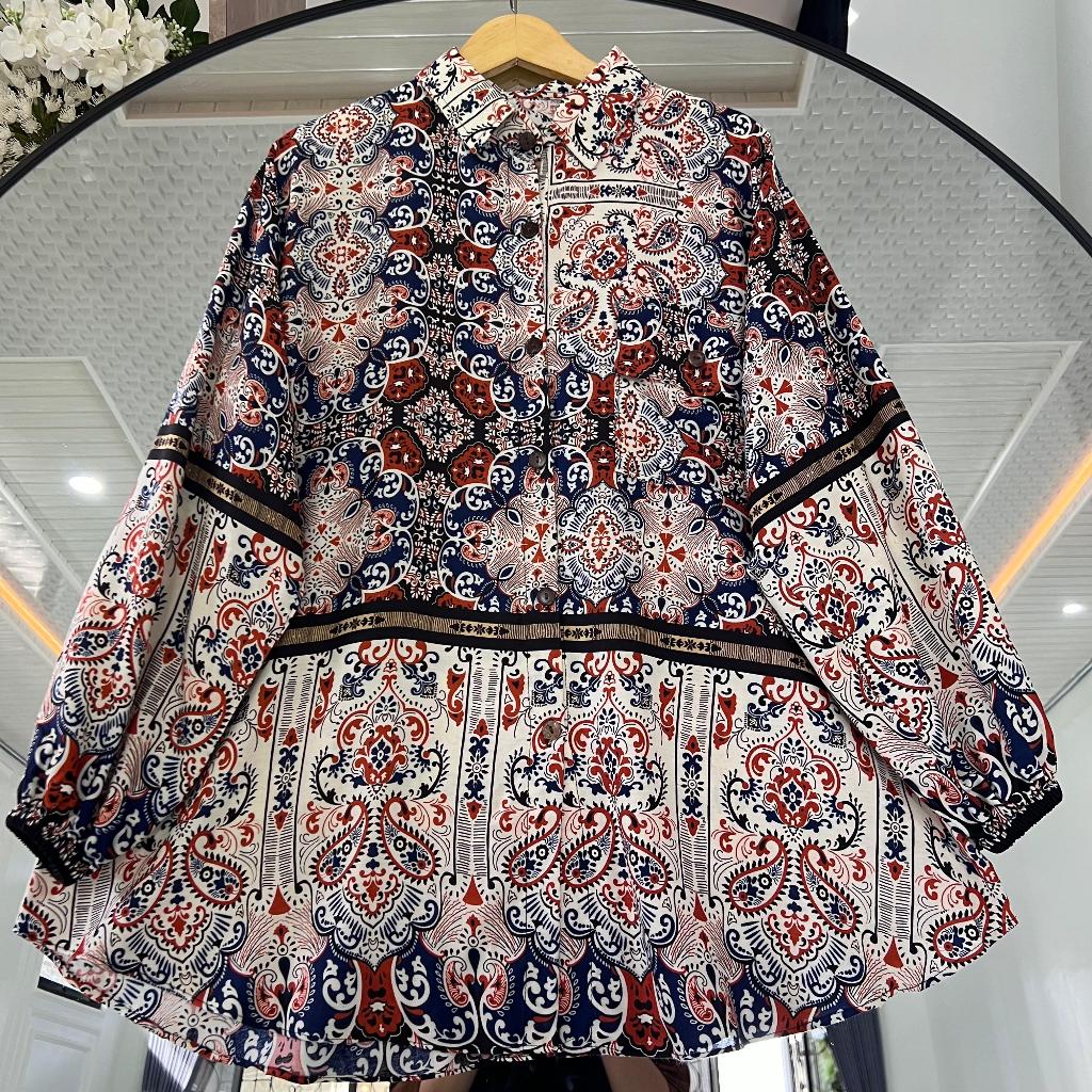 Atasan Kemeja LD 140cm Wanita Oversize Jumbo Plus Size Bahan Rayon Motif Kekinian