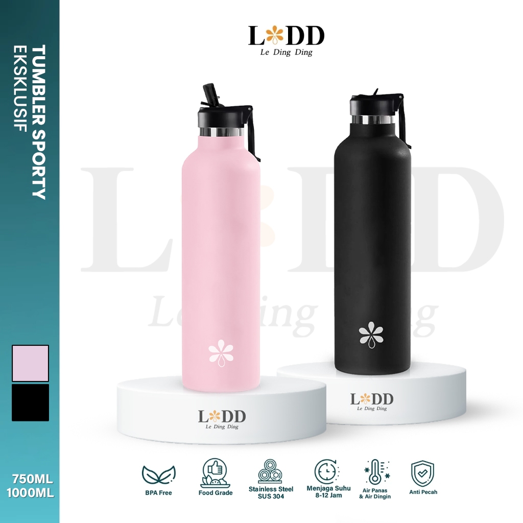 Tumbler Stainless 1000Ml Tahan Panas Dingin 24 Jam Botol Minum Aesthetic Anti Bocor Termos Sedotan Pink