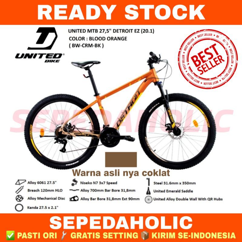 Sepeda Gunung 27.5 Inch MTB UNITED DETROIT EZ Alloy 21 Speed Garansi Resmi 5 Tahun