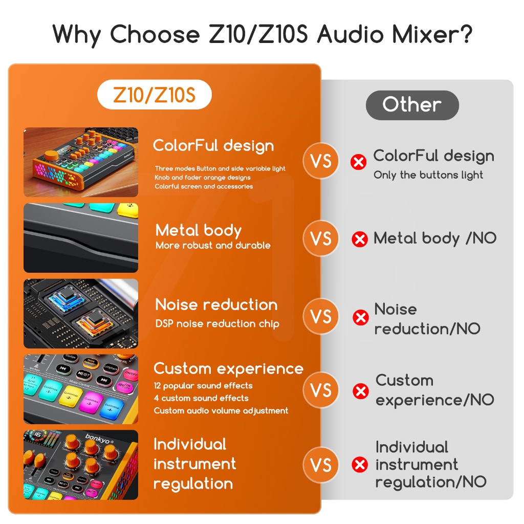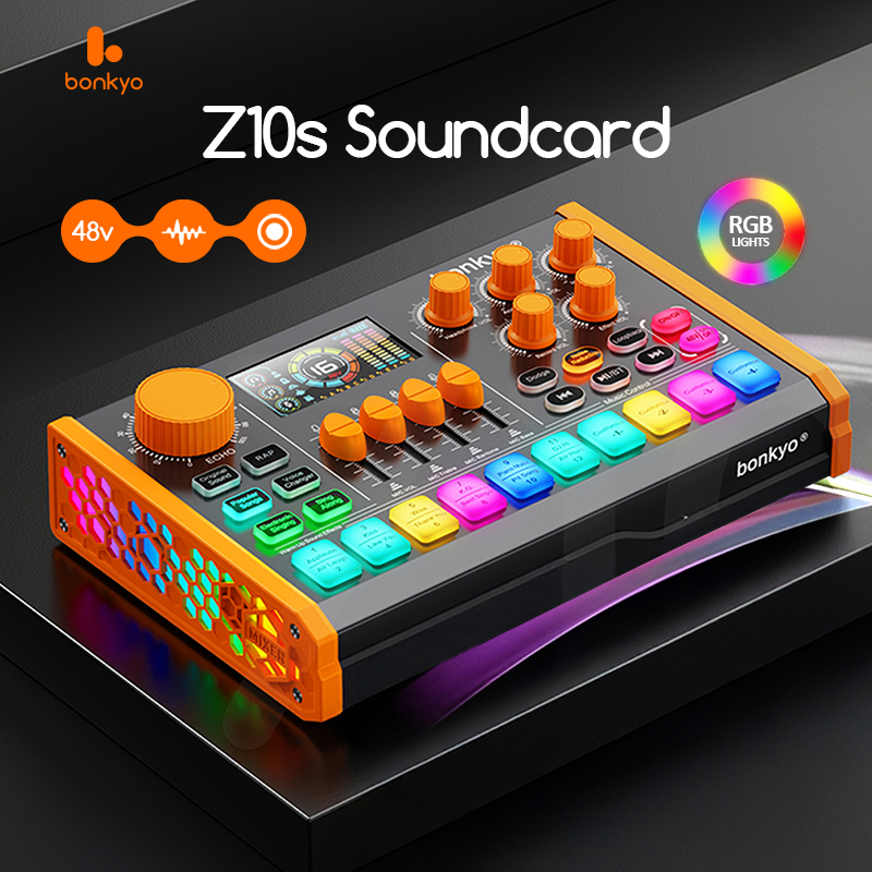 Bonkyo Z10S Sound Card Bluetooth Live Z10S 48V Kartu SuaraTekstur Logam dan Pencahayaan RGB Mixer Audio Live untuk Karao