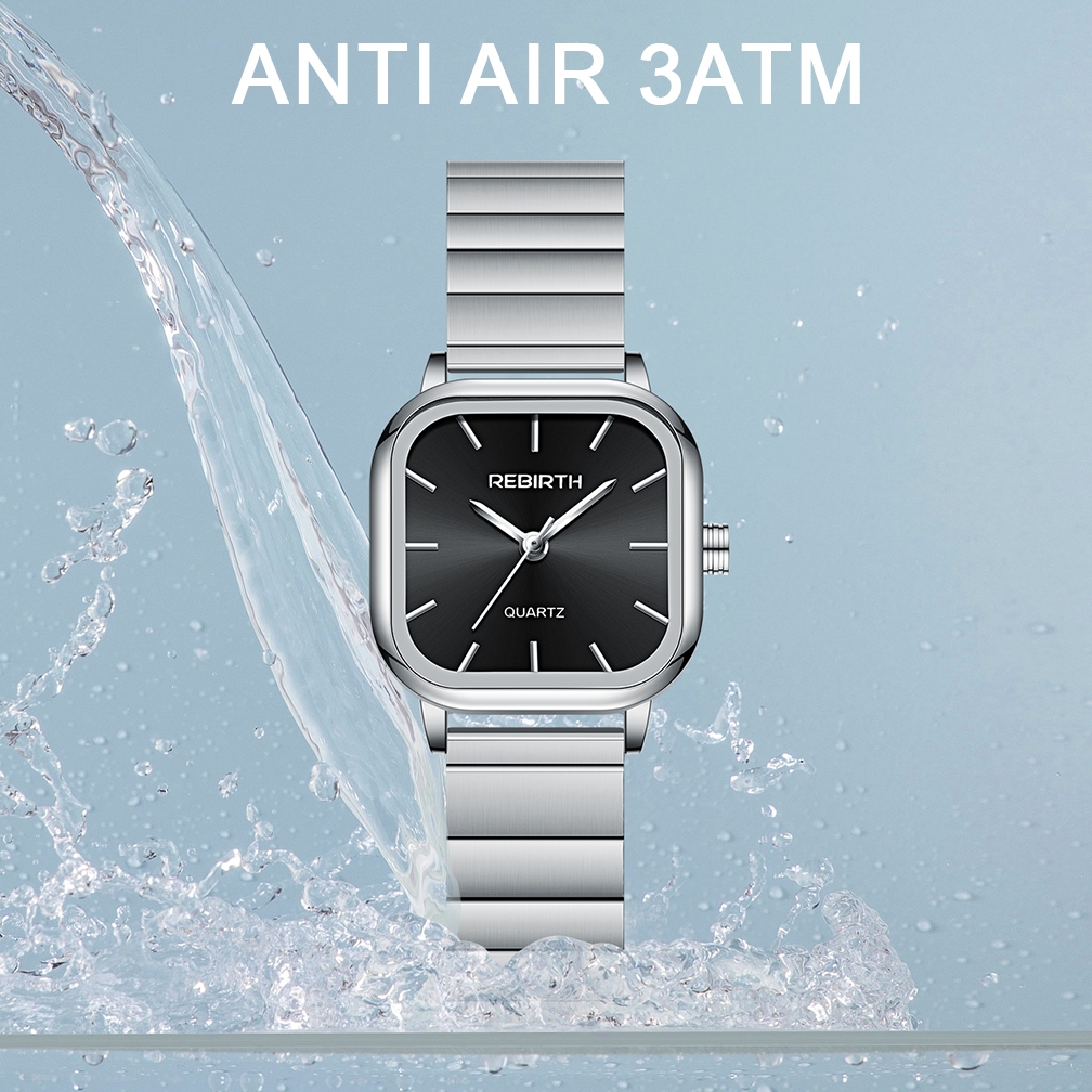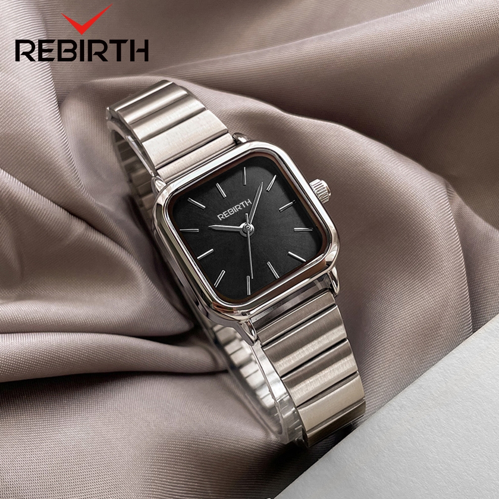 REBIRTH Jam Tangan Wanita Kotak Estetik Tali Stainless Steel Jam Tangan Cewek Korea Kekinian