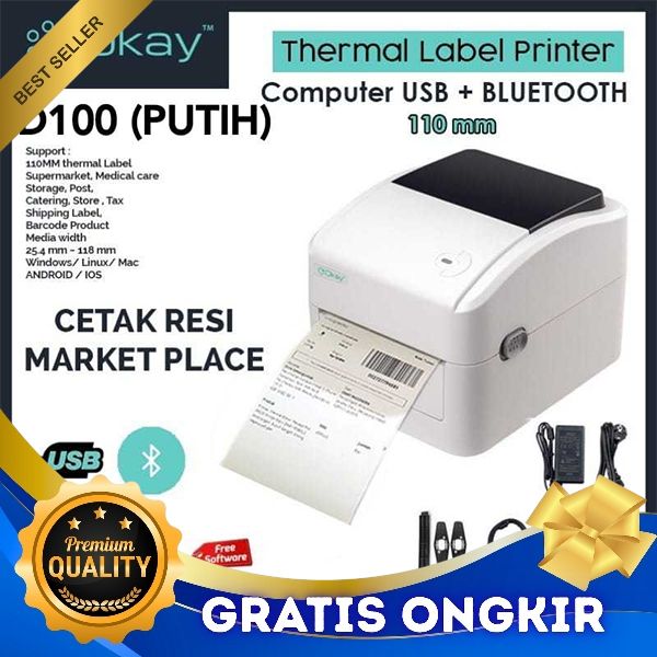 [Mall] OKAY D100 BW BL Printer label pengiriman barcode thermal Max Sticker A6 110mm Printer Resi