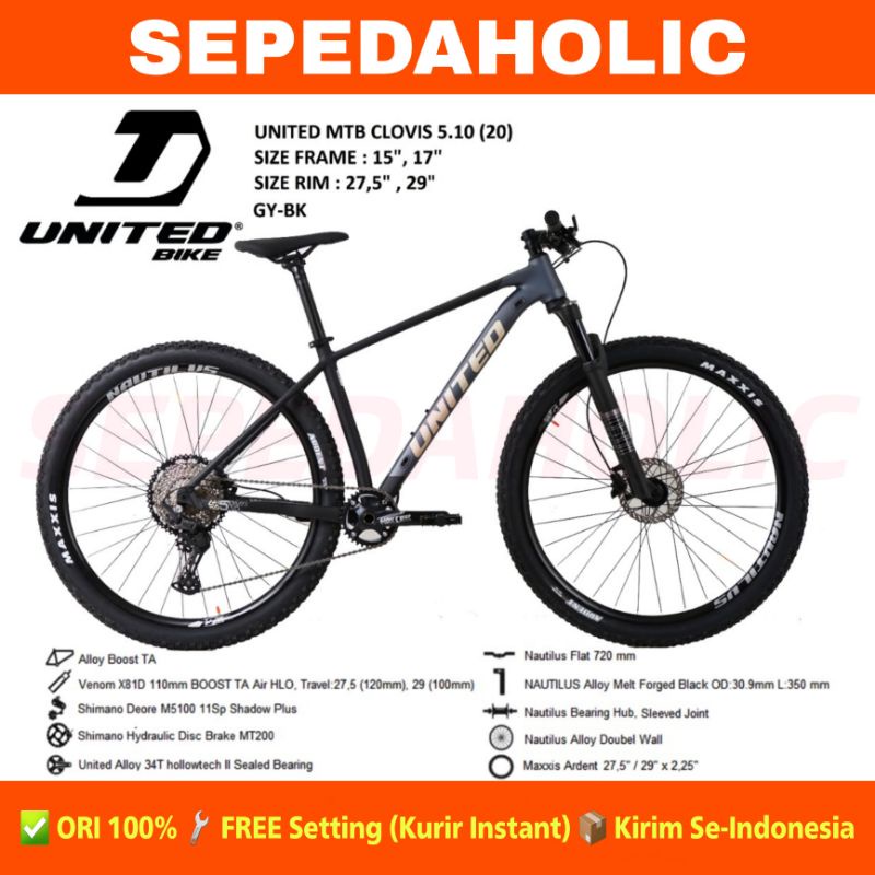 Sepeda Gunung 27.5 & 29 Inch MTB UNITED CLOVIS 5.1 5.10 DEORE 11 Speed Rem Hidrolik Garansi Resmi 5 Tahun