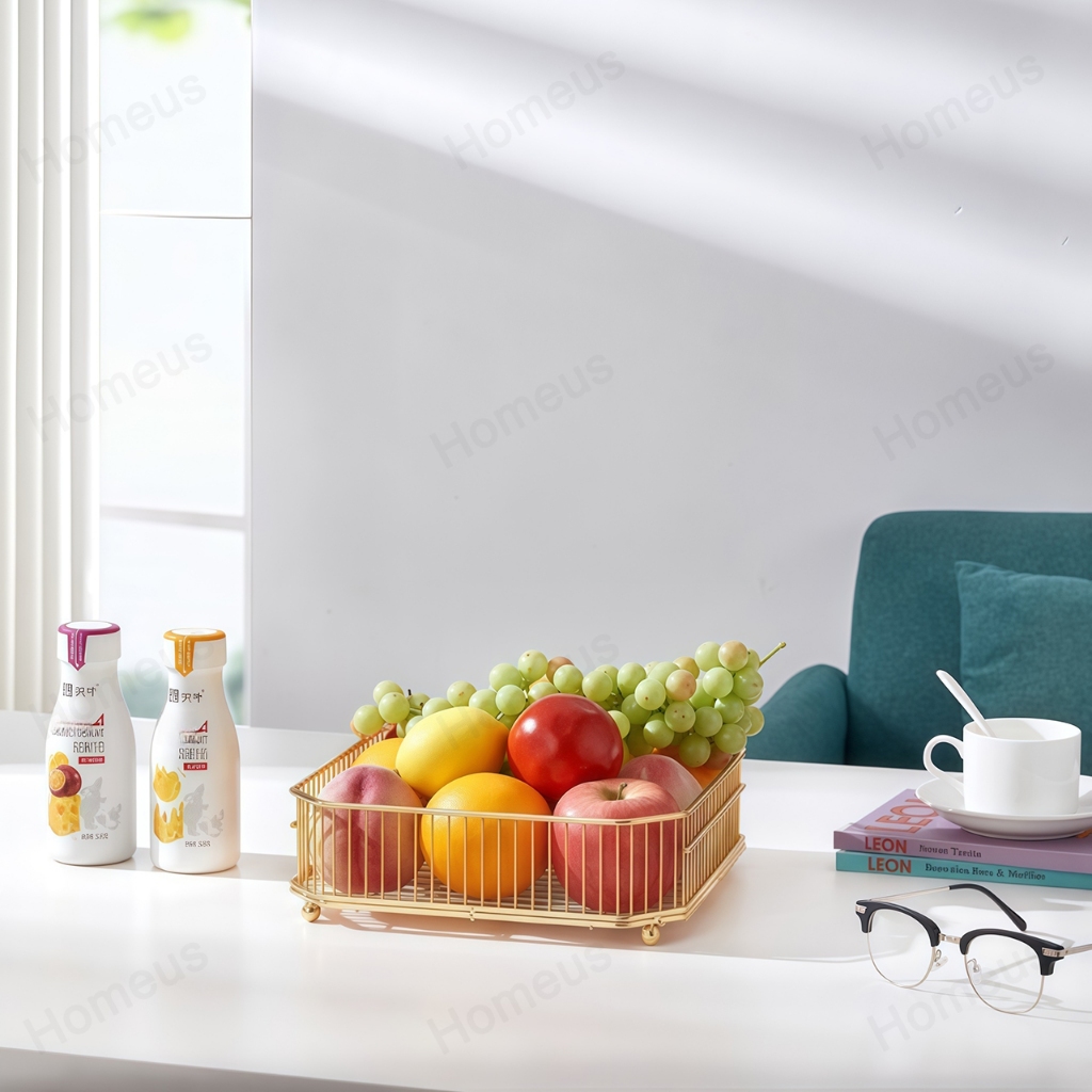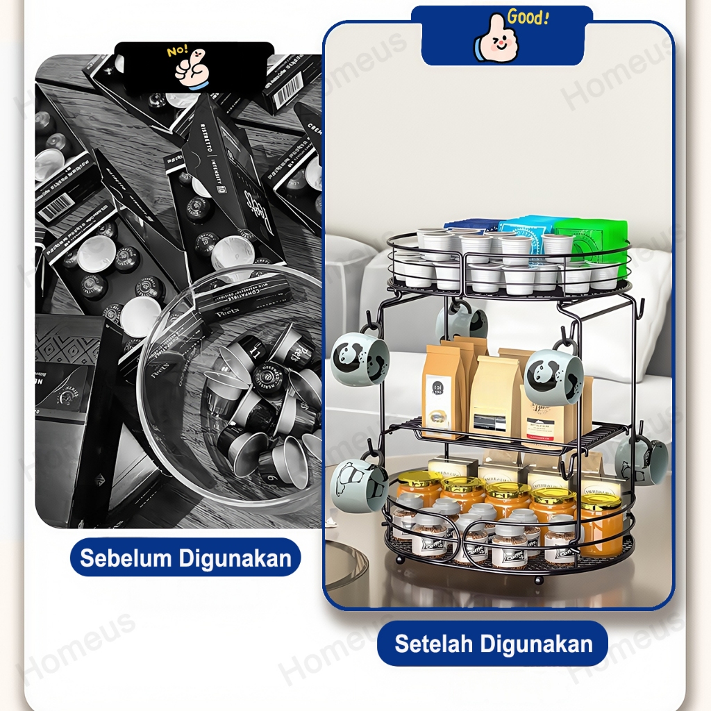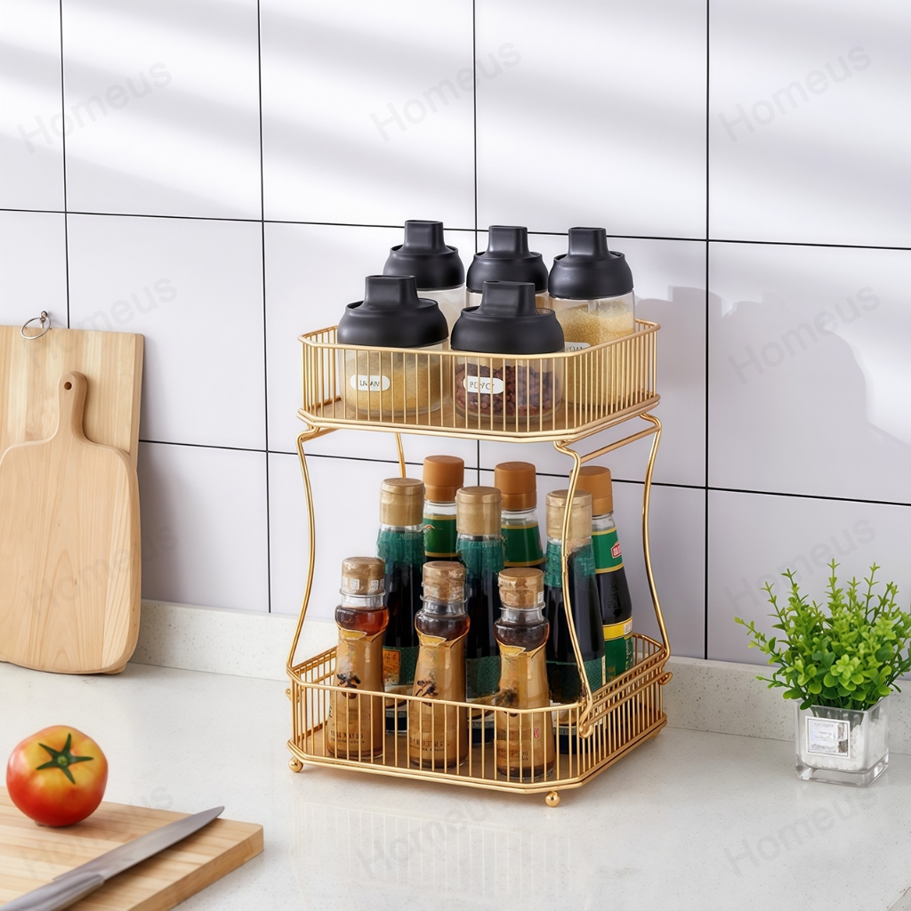 Homeus Rak Buah Sayur Emas Dua Lapis Holder Cangkir Kopi Multi Fungsi Mudah Pasang Dapur & Ruang Tamu