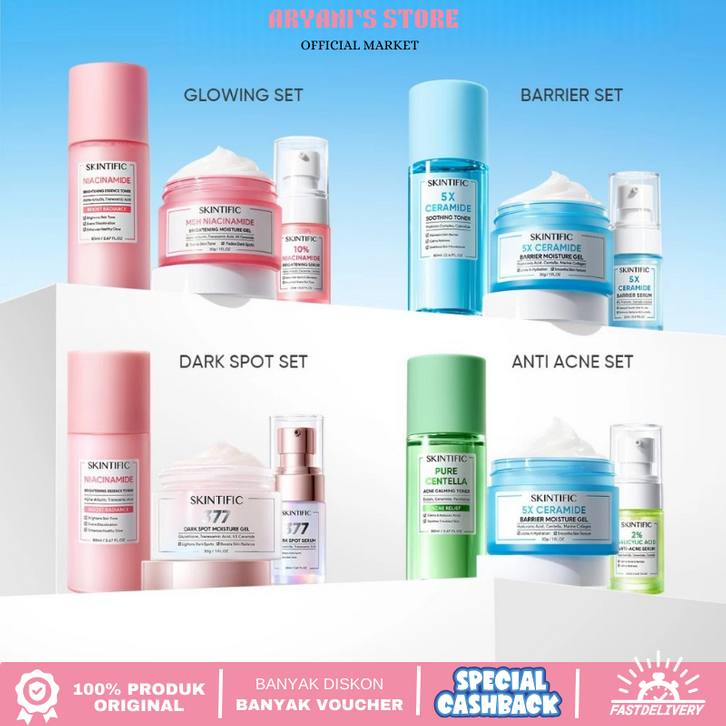 SKINTIFIC Paket 3 pcs Set - Moisturizer Retinol Serum Masker Peeling Skincare Sunscreen Facial Wash OFFICIAL STORE Indo